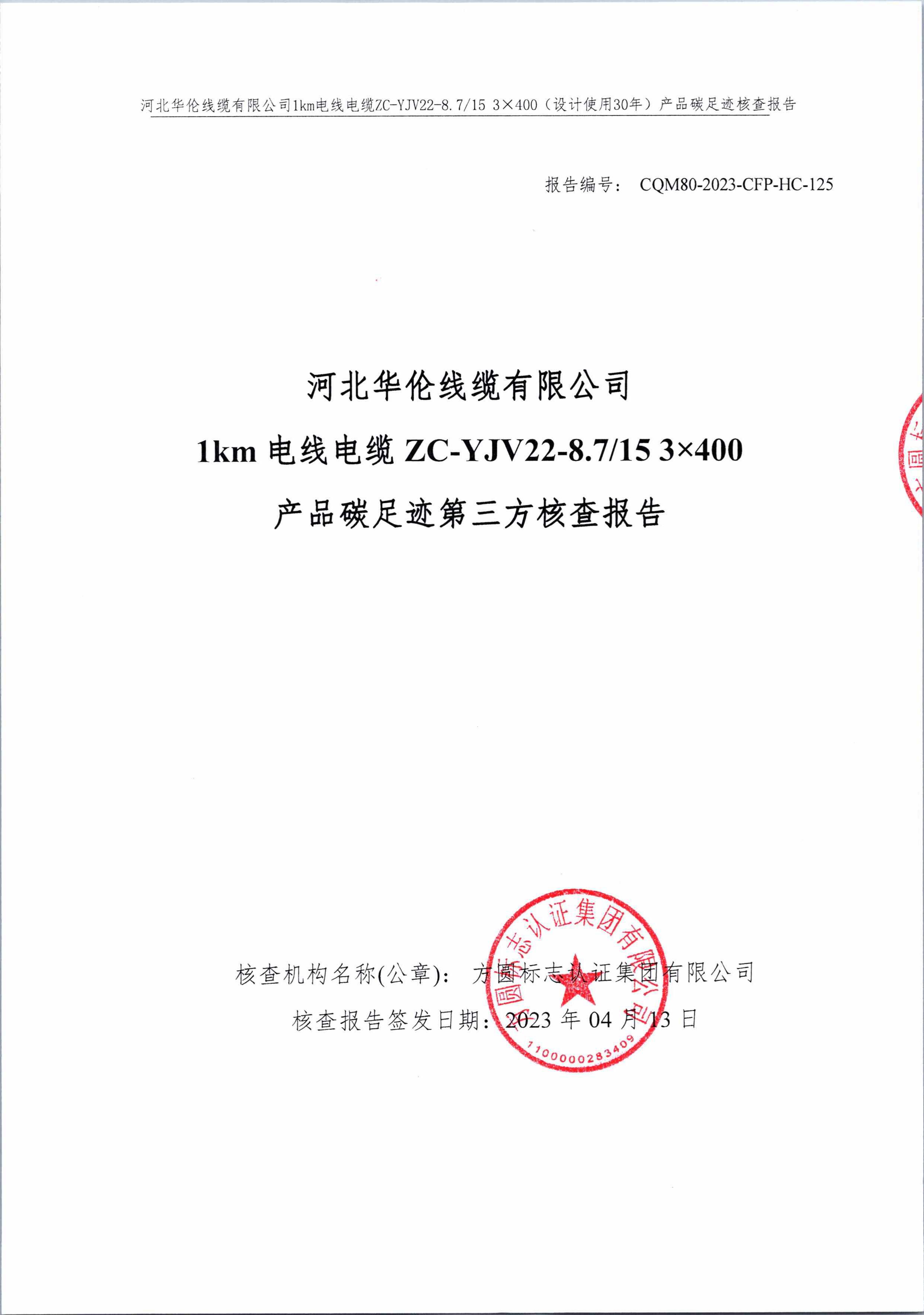河北華倫線纜有限公司1km電線電纜碳足跡報告(蓋章)