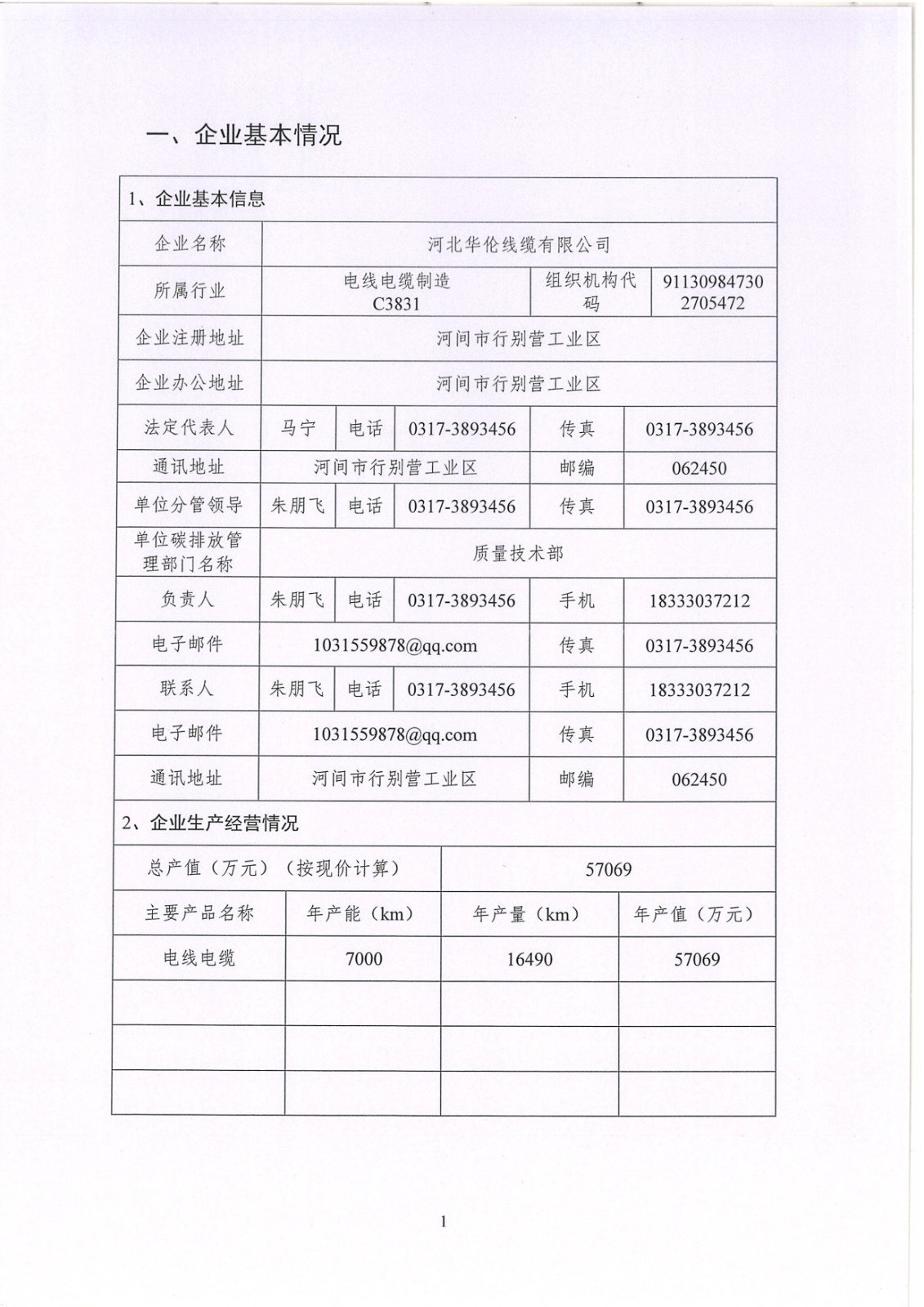 河北華倫線纜有限公司2022年溫室氣體排放報(bào)告及改善計(jì)劃
